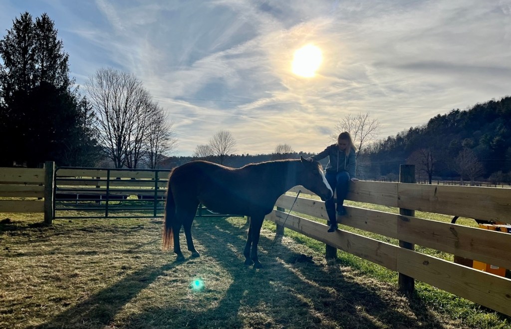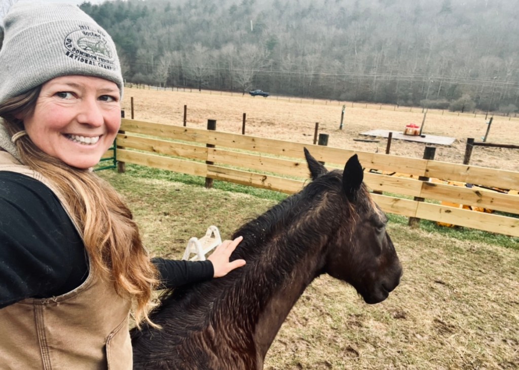 Eventually she came into the pen area with me, but the first time she did, and the gate was open I was surprised at what I got. She stood zoned out with me in that pen for 30 minutes. I couldn’t “ask” her anything. Just sit with her quietly as she would come in and out sometimes shaking her whole body and licking and chewing and then going back into this far away place.