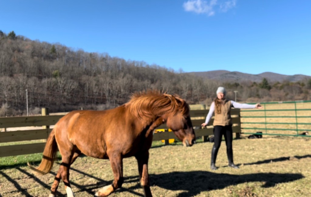 Inviting Wyoming to dance, I find she reads my mind, her direction changes and response to energy is really dynamic and fun, but also being the passionate one she is quicker to disengage and be bothered by something and walk off. I also find she is likely to re-engage the quickest. If she doesn’t like something and leaves me, if I allow her the moment to take a break, she often comes back on her own to give it another try.