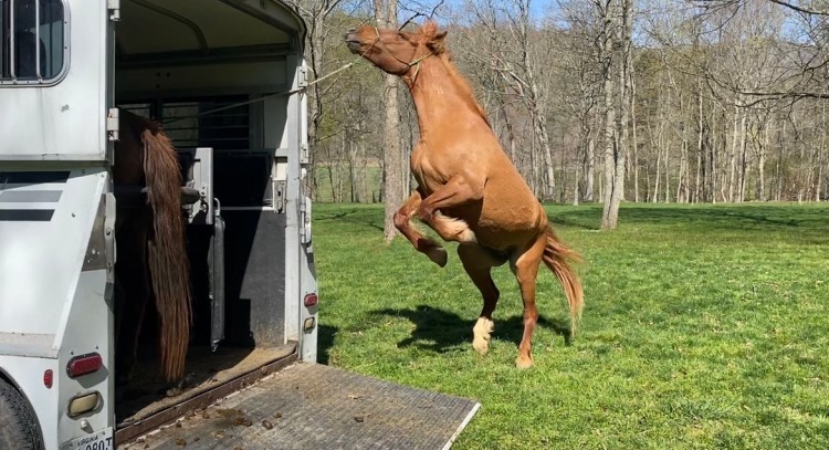 I’ve had some truly stunning moments of riding this powerful mare — stunning in her balance and grace under saddle, stunning in her athleticism to buck and dance in protest, and less stunning as I stood next to her on trail in confusion as she laid down and tried to roll in a pile of leaves (she got so good at this I’d barely have time to jump off before she was on the ground!). I have video of her running with me around an obstacle course at complete liberty and I’ve had her threaten me violence for asking for some simple circles and figure 8s. I’ve gotten her to ride on the trailer – twice in 6 years and also had her almost kill us both trying to do loading practice last year. I’ve looked at our experience together and wondered if I am simply a terrible horsewoman or if she might be demon possessed.