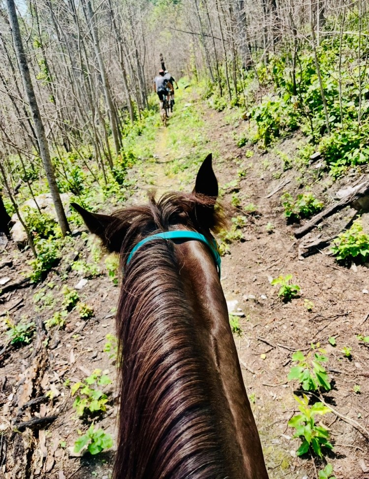 I spend a lot of miles and hours in the saddle, and I am also constantly considering how I can improve my riding. I have been taking virtual lessons with a wonderful dressage trainer I admire from Tennessee (Mattalyn Rogers), and she is helping me find where Khaleesi is tight or weak and where I am not balanced well. We continue to improve our movement toward relaxed and flexible strength. I had one last lesson before packing up, and it gave me some great ideas to consider while we’re riding all day Saturday into Sunday!